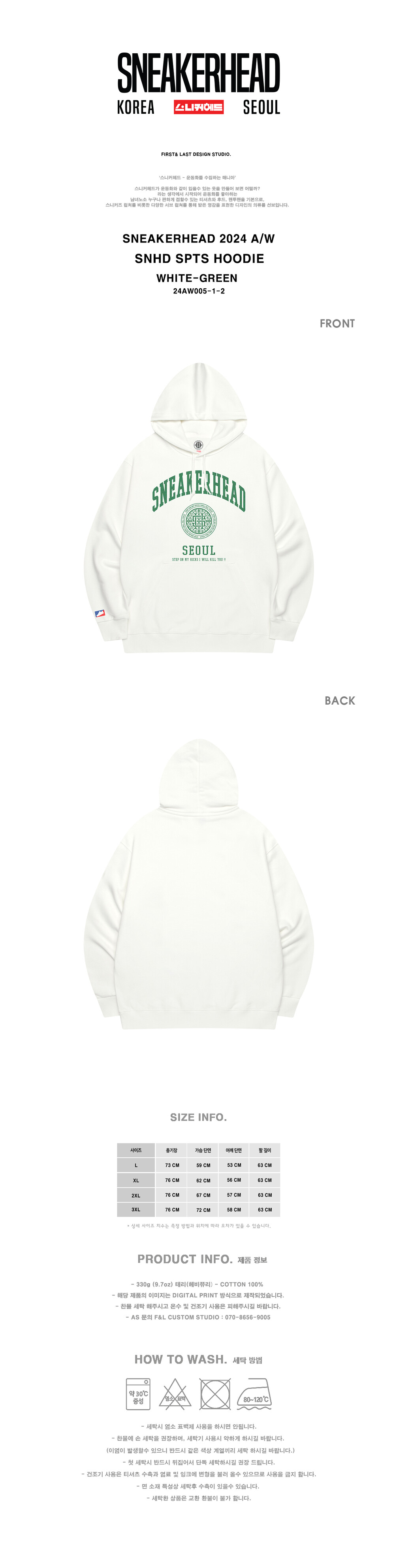 SNHD SPTS HOODIE WHITE-GREEN (TERRY)