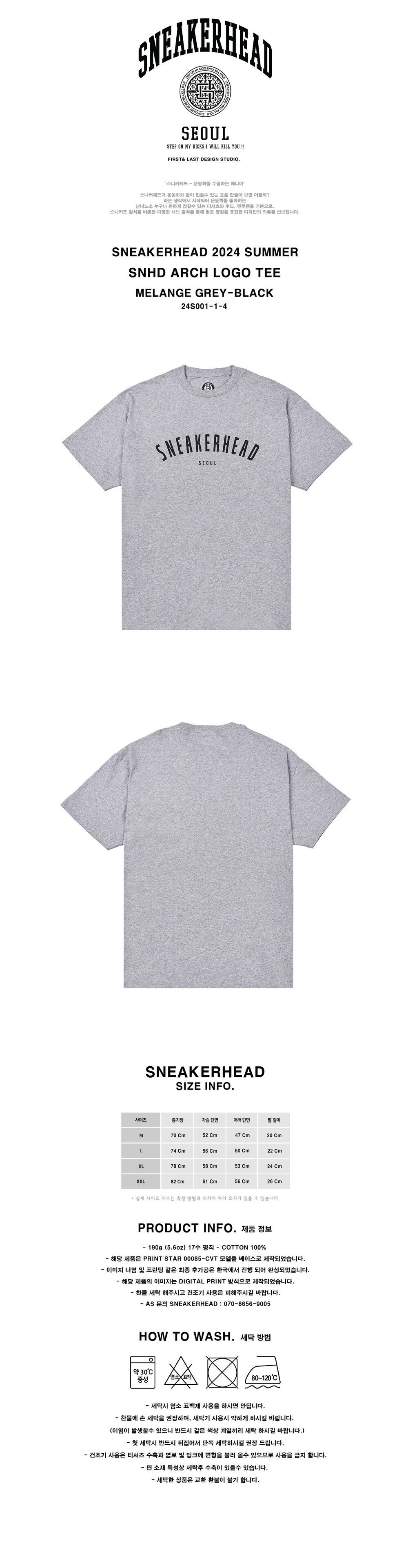SNHD ARCH LOGO TEE MELANGE GREY-BLACK