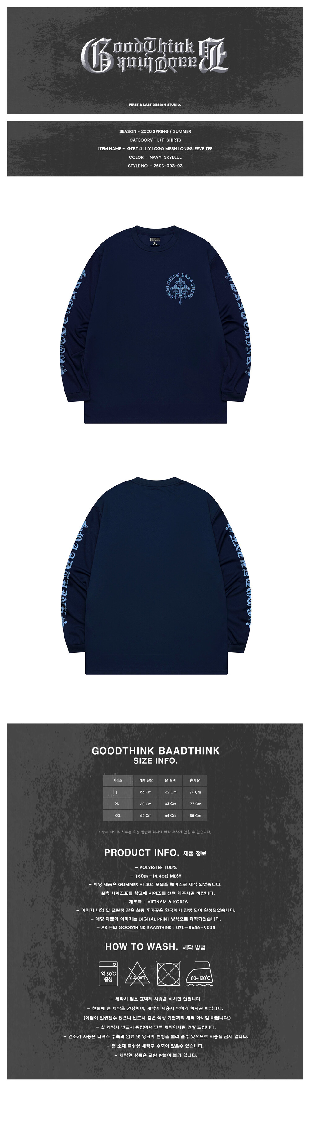 GTBT 4 LILY LOGO MESH LONGSLEEVE TEE NAVY-SKYBLUE