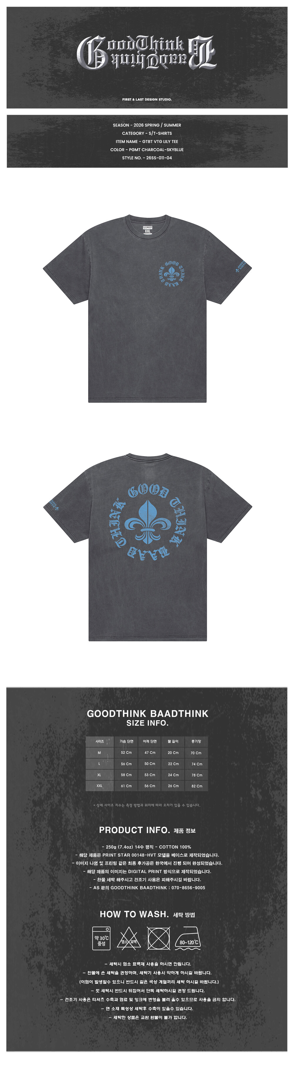 GTBT VTG LILY TEE PGMT CHARCOAL-SKYBLUE