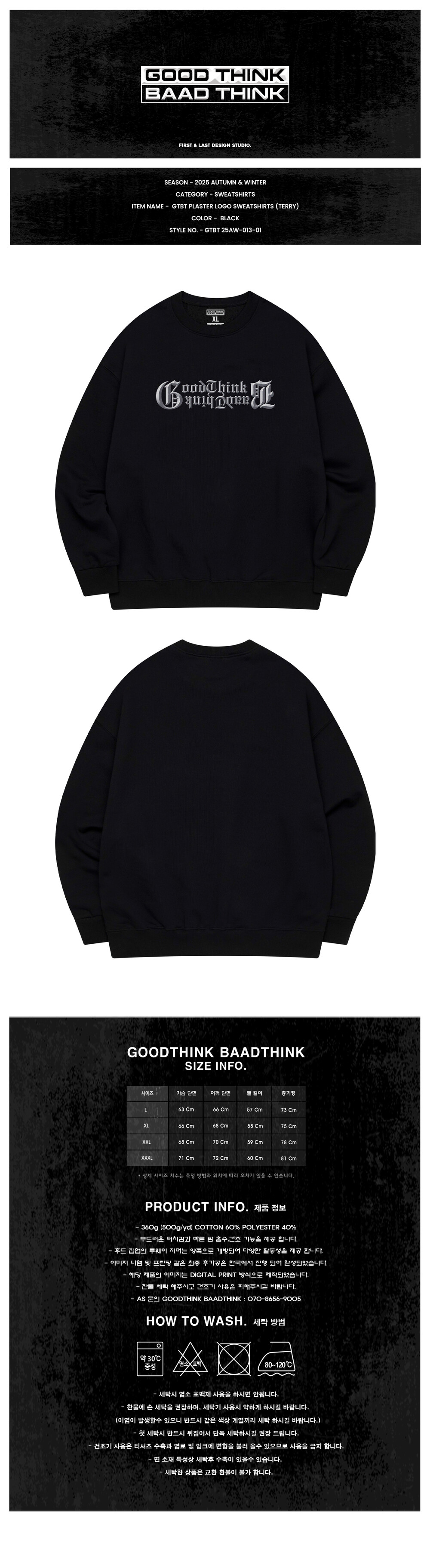 GTBT PLASTER LOGO SWEATSHIRTS (TERRY) BLACK