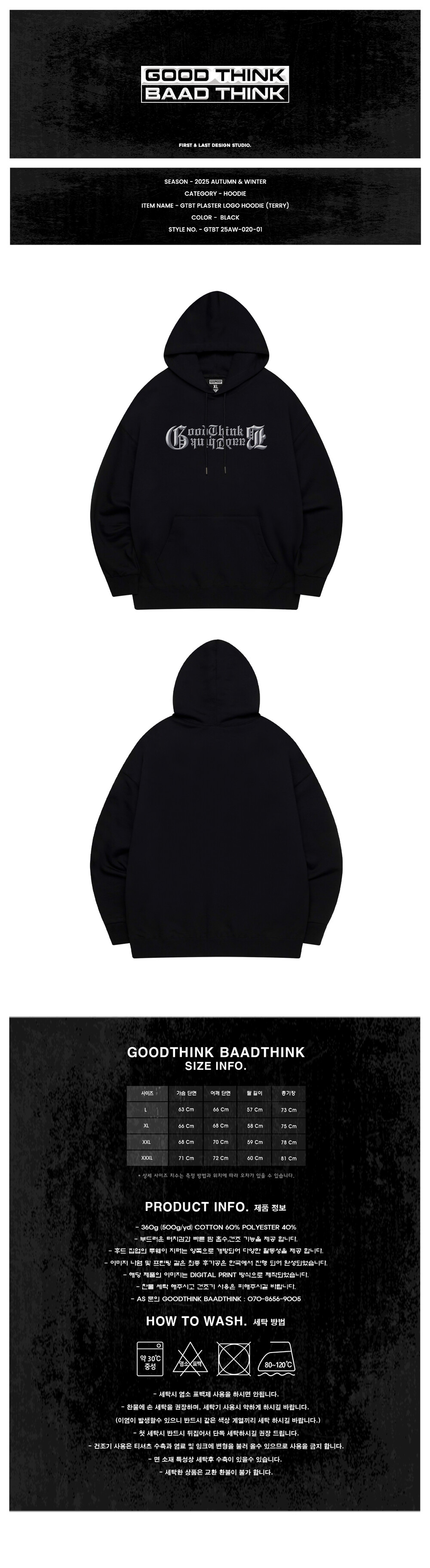 GTBT PLASTER LOGO HOODIE (TERRY) BLACK