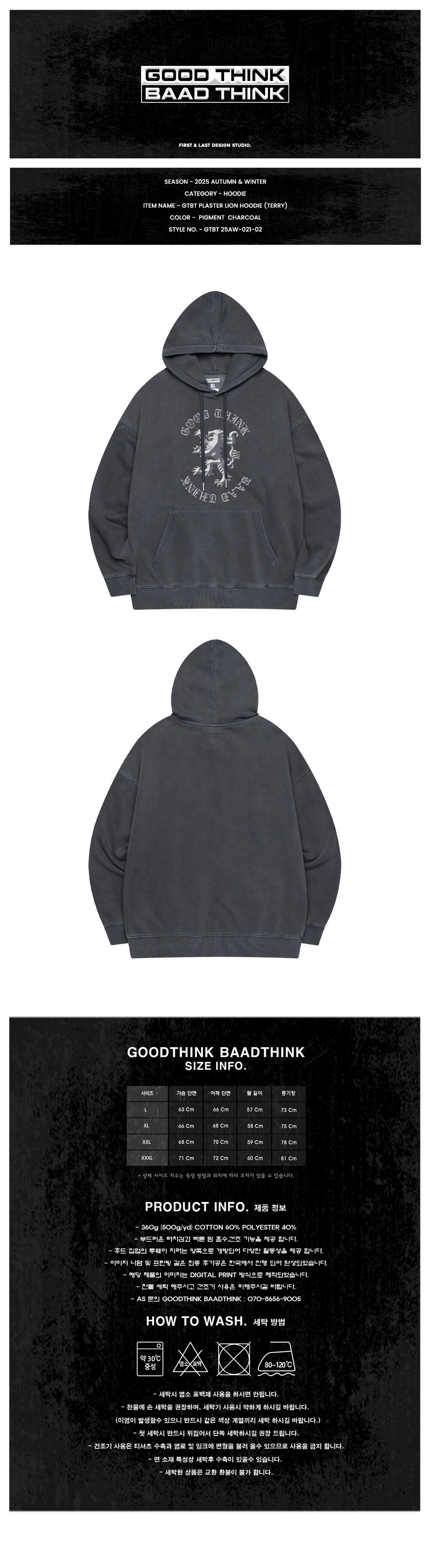 GTBT PLASTER LION HOODIE (TERRY) PGMT - CHARCOAL