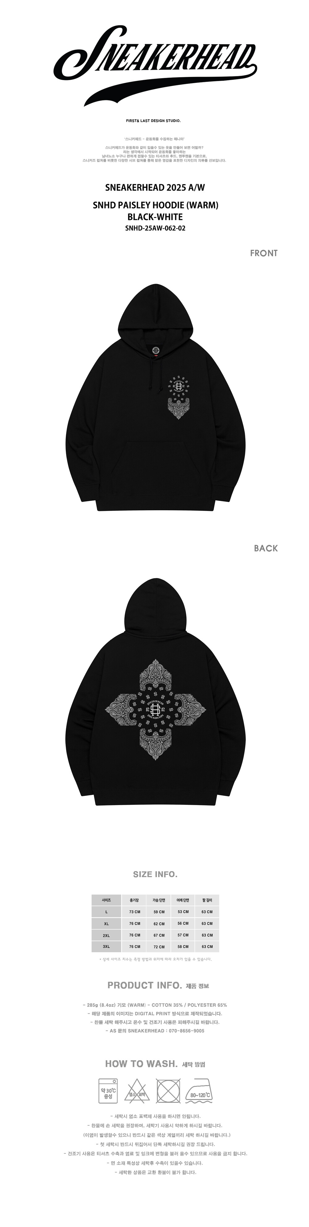 SNHD PAISLEY HOODIE (WARM) BK-WH