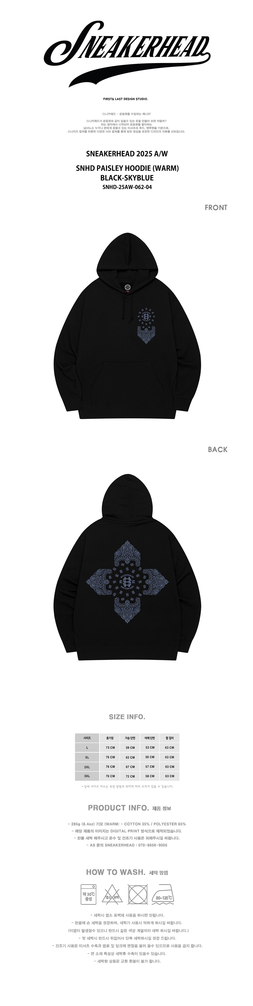 SNHD PAISLEY HOODIE (WARM) BK-SKYBLUE