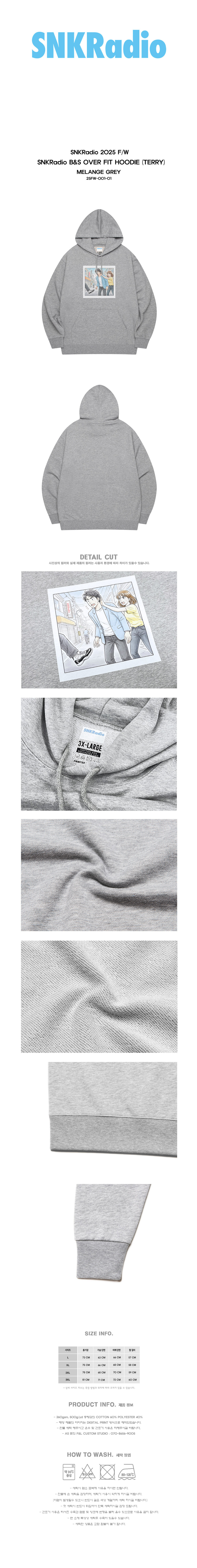 SNKRadio B&S OVER FIT HOODIE MELANGE GREY (TERRY)