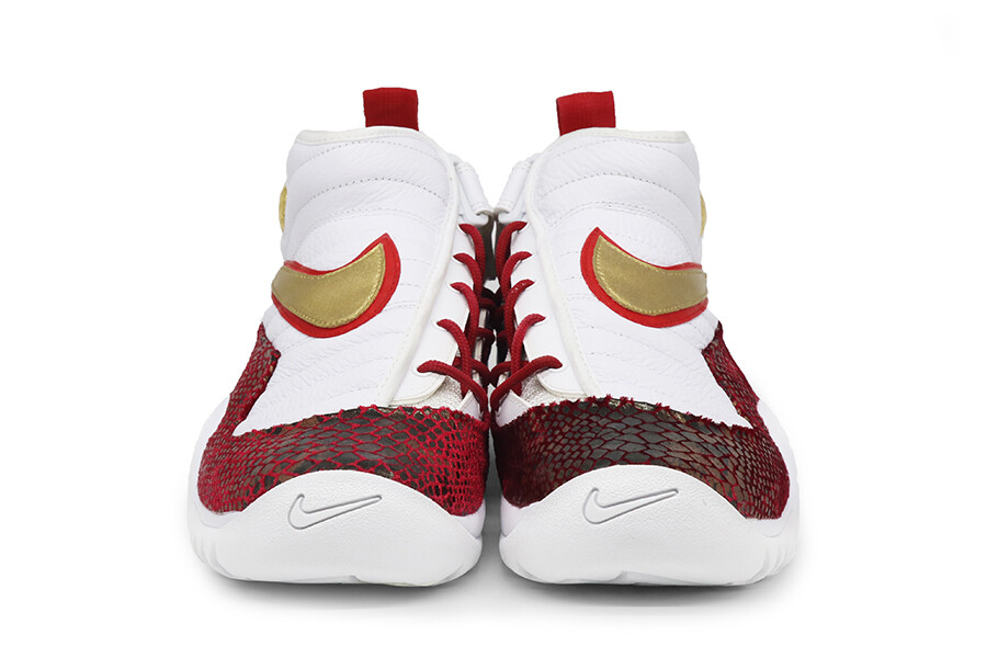 Material: Red, Fire Red Leather paint, Metalic Gold Paint, Snake Skin Fabric, Gold Fabric